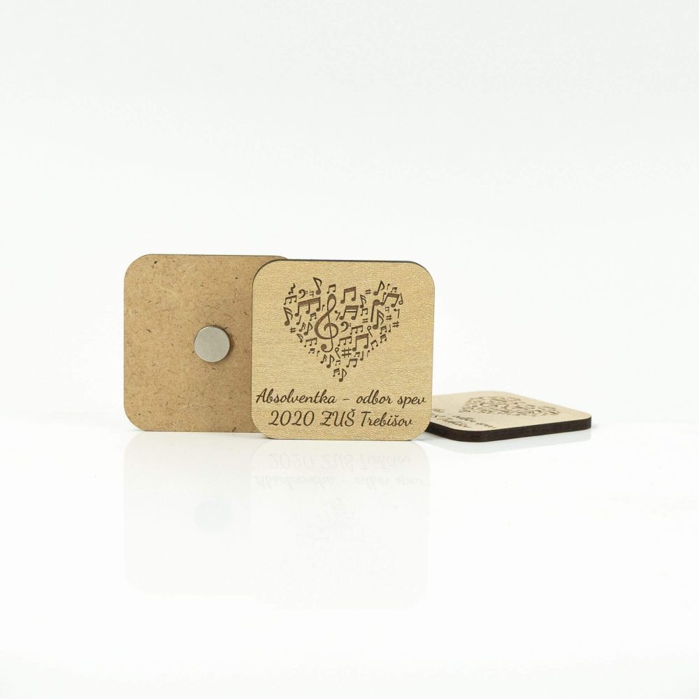 Drevené svadobné magnetky – Štvorec srdce noty
